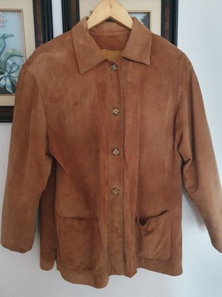 Chaqueta de ante para mujer. - Material: Ante autentico pero no tiene etiquetas de ahí su preciomide de sisa a sisa 57 ct ,de largo 70 ct y manga53 ct - Color: Marrón - Talla: XL