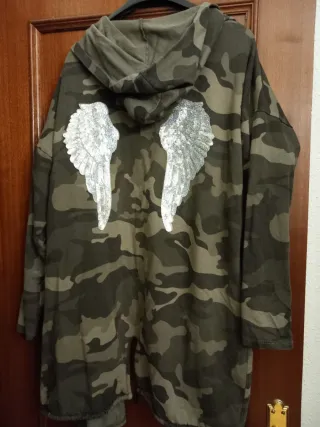 Chaqueta con estampado de camuflaje y detalle de alas plateadas en la espalda. - Diseño con capucha. - Estampado militar. - Aplicación de alas brillantes.