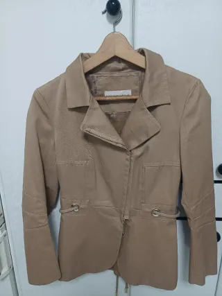 Chaqueta de mujer en color beige. - Diseño con solapas. - impermeable - Bolsillos frontales con botón. - Cierre con botones y cremallera - tiene cinturón - Detalle de trabillas en los puños. Massimo Dutti talla XL 14€