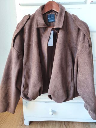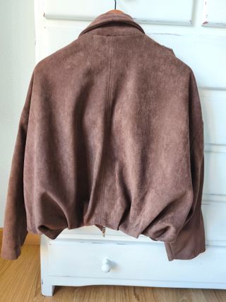 Stradivarius cazadora confeccionada en efecto antelina. Bajo acabado en corte efecto globo. Color marrón, talla S nueva. Avilés