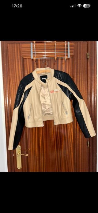 Chaqueta Pull and Bear beige y negra mujer