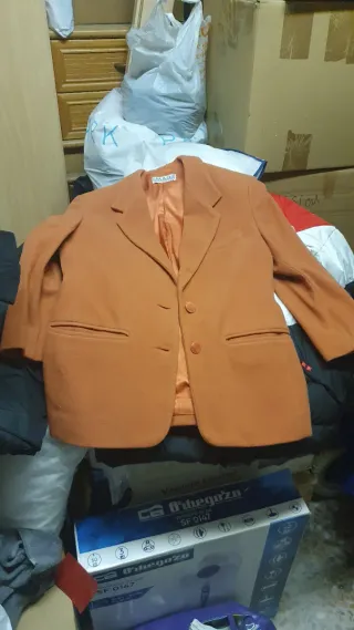 Chaqueta de vestir elegante con un llamativo color naranja. Ideal para ocasiones formales o para añadir un toque de estilo a tu atuendo. - Diseño clásico de dos botones. - Bolsillos frontales. - Forro interior satinado.