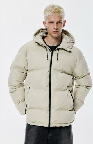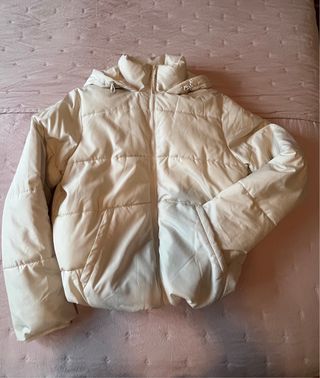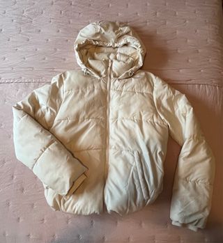 Chaqueta acolchada de la marca Brownie en color beige. Cuenta con capucha y cierre de cremallera Cremallera perfecta En muy buen estado, sin manchas ni rotos
