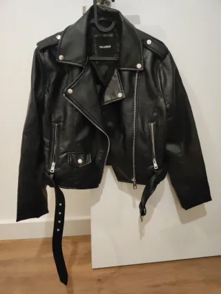 Chaqueta estilo biker de la marca Pull&Bear. - Diseño clásico. - Cremalleras plateadas. - Cinturón ajustable.