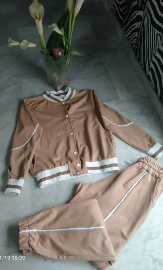 Conjunto deportivo de chaqueta y leggings, los dis con felpa dentro - Chaqueta blanca con detalles en negro. - Leggings negros. - Talla S.