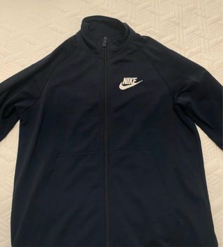 Chaqueta deportiva de la marca Nike en color azul. Ideal para actividades deportivas o uso casual. - Cierre completo con cremallera. - Cuello alto. - Bolsillos laterales.
