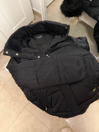 Chaqueta acolchada de Guess en color negro. Presenta un diseño moderno y cálido. - Pelo desmontable en la capucha. - Cuello alto con forro interior. - Cierre de cremallera y botones a presión. - Puños elásticos acanalados.