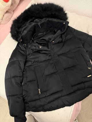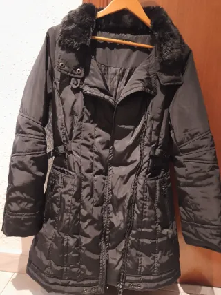 10€ cada chaqueta Abrigo negro con detalles de pelo en la capucha, hay más fotos de chaquetas - Cierre de botones tipo duffle. - Bolsillos frontales. - Capucha con pelo sintético.