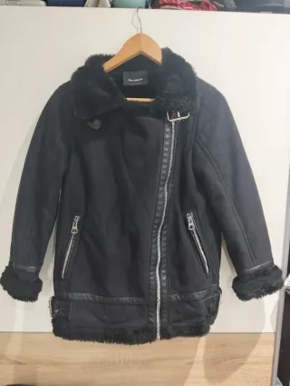 Chaqueta de estilo aviador con forro de pelo. - Cuello con solapas y detalle de hebilla. - Cierre de cremallera asimétrica. - Puños y bajo con acabado de pelo. - Bolsillos laterales con cremallera.