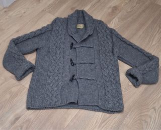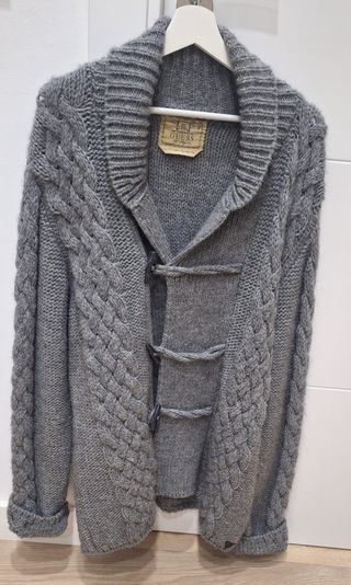 Cárdigan de punto grueso con diseño trenzado. - Cierre de botones de madera. - Cuello tipo chal. - Puños y bajo de canalé.