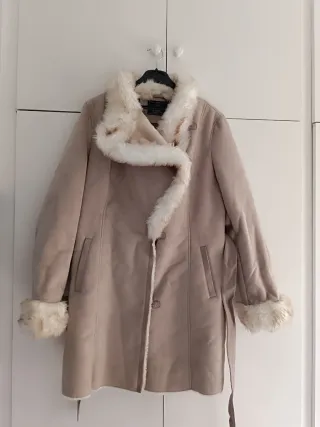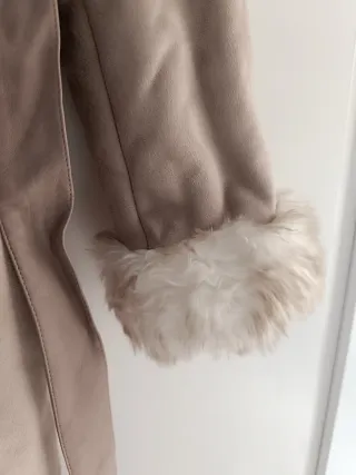 Chaqueta de pelo con un diseño moderno y cálido. - Material exterior tipo ante. - Forro interior de pelo sintético. - Cierre de cremallera. - Cinturón ajustable con hebilla.