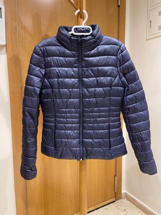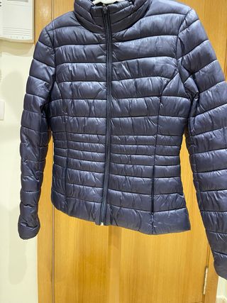 Chaqueta acolchada de color azul. - Diseño ligero y abrigado. - Cuello alto. - Cierre de cremallera frontal. Aunque ponga talla M equivale a una S