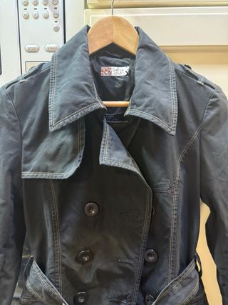 Gabardina de la marca GREEN COAST en color negro. Un clásico para cualquier armario. - Diseño de doble botonadura. - Cinturón ajustable a la cintura. - Bolsillos frontales con solapa. - Detalle de hombreras. Largo de chaqueta 74cm Largo de mangas 62cm
