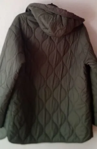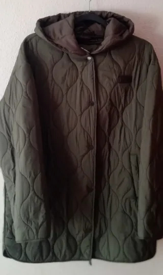 Cazadora acolchada de color verde con capucha. - Detalle de pelo sintético en la capucha. - Cierre de cremallera frontal. - Cordones ajustables en la capucha.