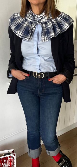 Este accesorio de cuello añade un toque de estilo a tus camisas, chaquetas o abrigos. - Diseño a cuadros en azul y blanco. - Talla única.