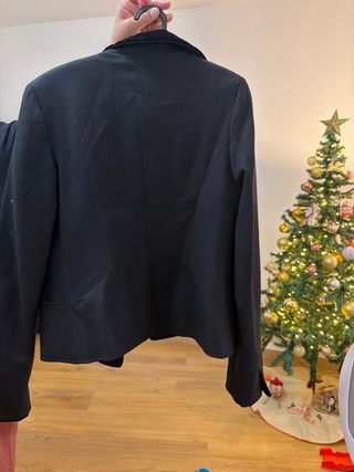 Chaqueta de estilo militar en color azul. Presenta un diseño con doble fila de botones dorados. Talla 40-42 - Cuello mao. - Cierre cruzado con botones. - Dos bolsillos frontales con solapa. - Mangas largas.