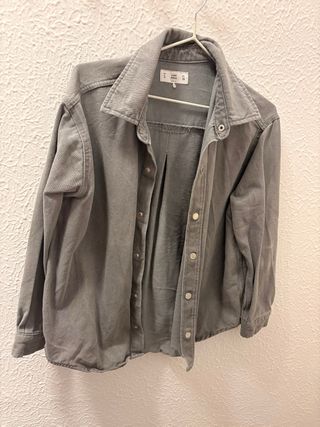 Chaqueta de estilo denim en color gris. Presenta un diseño moderno y versátil. - Cierre de botones metálicos. - Cuello camisero. - Puños abotonados.
