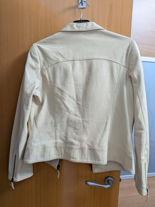 Chaqueta de piel AUTÉNTICA de la marca El Caballo en color beige/crema. Un clásico que nunca pasa de moda. En muy buen estado - Diseño elegante y atemporal. - Cierre de cremallera frontal. - Bolsillos con cremallera. - Forro interior a rayas. Ojo, en la ultima foto se aprecia una pequeña mancha, nada importante si sabes tratarla.
