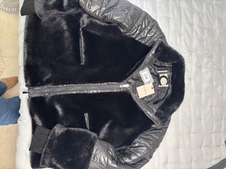 Chaqueta acolchada de color fucsia, ideal para mantenerte abrigado. - Capucha con detalle de pelo. - Cierre de cremallera frontal. - Bolsillos laterales con cremallera, falta una cremallera (foto)