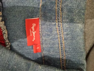 Chaqueta vaquera de la marca Pepe Jeans. - Diseño original, parte de tela vaquera azul y parte de punto rojo. - Costuras reforzadas.