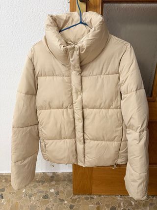 Campera acolchada de Stradivarius en color beige. - Cuello alto. - Cierre de botones. - Puños ajustables con cordón.