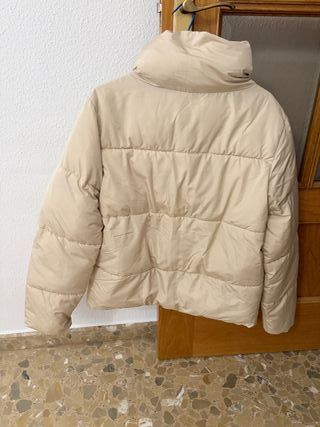 Chaqueta acolchada de Zara para mujer. - Diseño ligero y cálido. - Cierre de cremallera frontal. - Cuello alto con detalle de canalé. Tiene un pequeño fallo en el cuello (última foto) por eso su precio