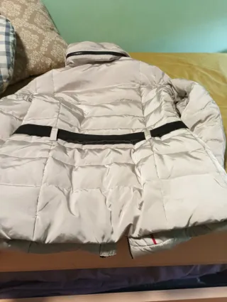 Chaqueta de tres cuartos con cuello de pelo sintético.sube hasta arriba.muy abrigado. - Cierre de botones. - Dos bolsillos frontales con cremallera. - Diseño acolchado.bolsillo derecho no baja la cremallera esta atascada. .Se le puede dar Mucha vida ..VACIO ARMARIOS!!!