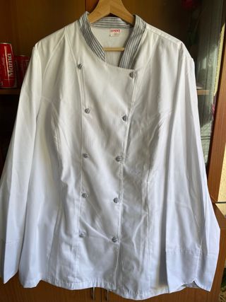 Chaqueta de cocinera talla XXLDe largo 72 cm De hombro a hombro 48 cm De axila a axila 63 cm Sin bolsillos