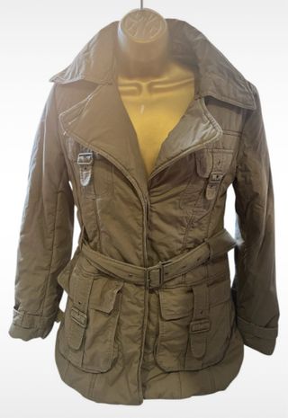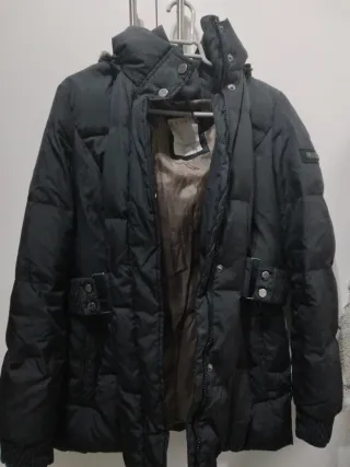 Chaqueta de la marca Esprit con capucha. - Color negro y detalles interiores en marrón. - Cierre de cremallera. - Bolsillos frontales con solapa y botón. - Cinturón ajustable en la cintura.