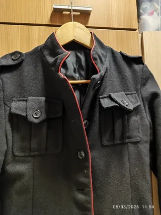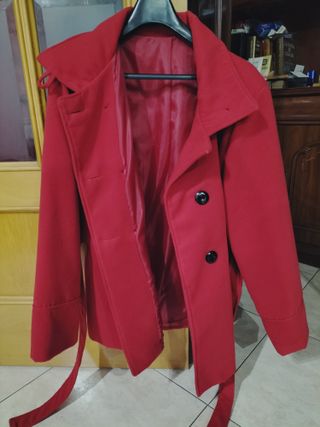 Elegante chaqueta de paño en color rojo, perfecta para añadir un toque de estilo a tu vestuario. - Diseño de doble botonadura. - Cinturón a juego para ajustar la silueta. - Cuello alto con detalle. - Puños anchos. Pocas veces usada para bodas.