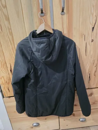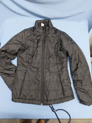 Chaqueta de entretiempo con capucha. - Cierre de cremallera. - Bolsillos delanteros con solapa. - Cordón ajustable en la cintura. - Poco uso. - Le falta un tope del cordón, se muestra en la foto.