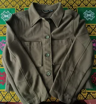 Chaqueta de mujer de la marca Esmara, en un bonito tono verde oliva. Perfecta para un look casual. 38-40 - Cierre de botones. - Dos bolsillos delanteros con solapa. - Cuello camisero.