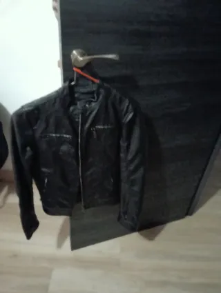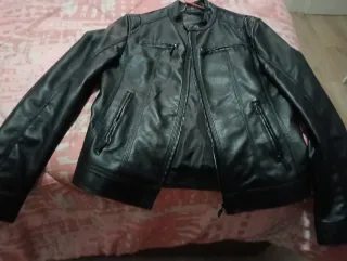 Chaqueta de piel sintética negra. Sin estrenar!!. Vendo porque fue un regalo y me viene grande y se me ha pasado la fecha de devolución. Tuve una igual y me duró al menos 5 temporadas. Nueva vale 69,90€, lo puedes ver en la foto. - Cuello redondo. - Cierre de cremallera frontal. - Dos bolsillos con cremallera en el pecho. - Dos bolsillos inferiores con cremallera.
