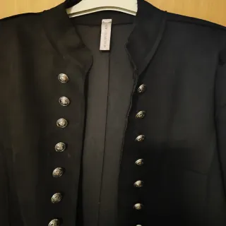 Elegante chaqueta estilo militar. - Diseño con doble fila de botones plateados. - Cuello mao. - Tejido de antelina.
