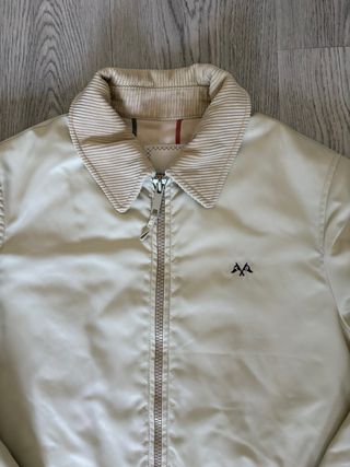 Chaqueta marca Thomas Burberry en color beige. Presenta un diseño moderno y elegante. - Cuello de pana. - Cierre de cremallera. - Pequeño logo bordado en el pecho.