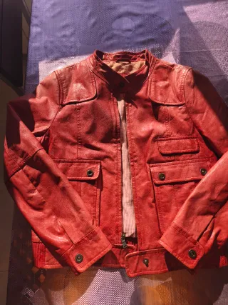 Chaqueta roja de Zara. Cuello y bordes de los delanteros adaptables. Talla L. Medidas en las fotos. Tiene dos manchitas en una de las mangas, que apenas se notan (foto).