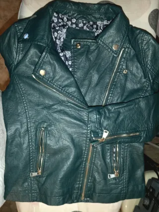Chaqueta cuero verde mujer