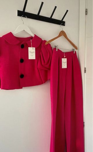 Traje chaqueta y pantalón rosa