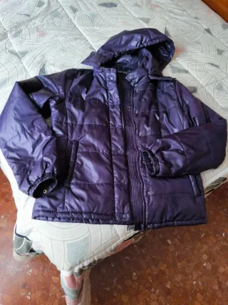 Chaqueta morada acolchada, poco usada y sin defectos. - Diseño con capucha. - Cierre de cremallera y botones. - Puños elásticos.