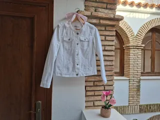 🤍Chaqueta vaquera blanca. 🤍De Stradivarius. 🤍Con detalle de trenza en los hombros. 🤍Cuello mao. 🤍Cierre con botones. 🤍Detalle de bolsillos en la parte delantera. 🤍100% algodón. 🤍Puesta un par de veces. Está en perfecto estado. 🤍Un básico de armario. 🤍Pregunta lo que necesites antes de comprar. Te atenderé encantada. 🤍Más chaquetas en mi armario: #eldiablovistede_rosachaquetas #chaquetadenimmujer #chaquetadenimblanca #whitedenimjacket #chaquetadedenim #chaquetatrenza #trenzado #denim #jacketfemmestradivarius #denimlovers #ootd #urbanmood #girly #fashion #aesthetic #antesmuertaquesencilla #girlylook #aesthetic #paseando