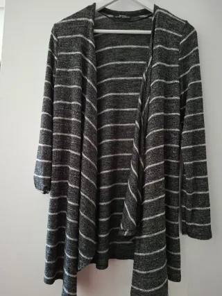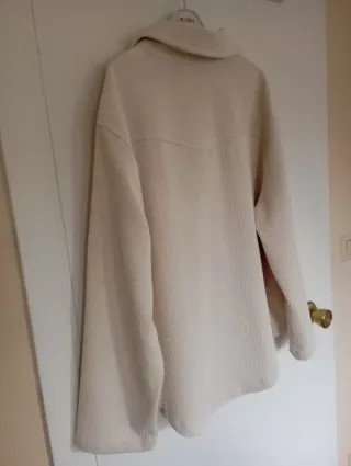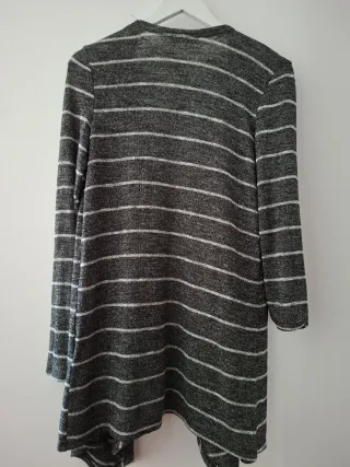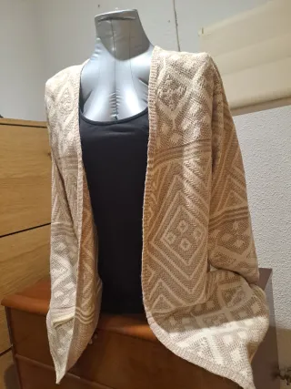 Chaqueta larga de punto sin estrenar. - Cordón ajustable en la cintura para un mejor ajuste. - Falsos bolsillos laterales (son sólo adorno) - Tejido suave y cómodo Sólo tiene un pequeño descosido que se ve en una de las fotos.