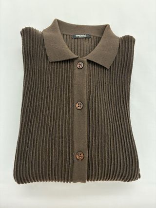 Chaqueta de punto en color marrón. - Cuello camisero. - Cierre de botones. - Diseño acanalado.