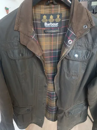 Chaqueta Barbour de estilo clásico, perfecta para el día a día. Presenta un forro interior a cuadros característico de la marca. - Cierre de cremallera y botones a presión. - Bolsillos frontales con solapa. - Cuello de pana. - Diseño encerado.
