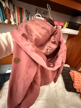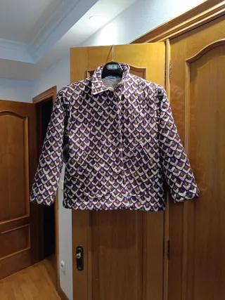 Chaqueta acolchada (aunque finita), muy ligera, con capucha. Forro interior de flores. Capucha desmontable. Poliamida y poliéster. - Cierre de cremallera. - Bolsillos laterales con cremallera. - Detalle de cordones para ajustar la capucha.
