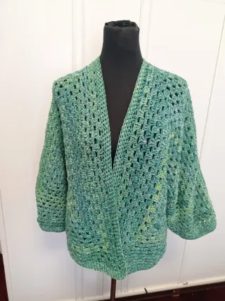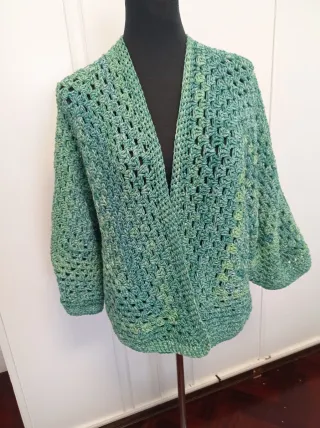 Chaqueta crochet verde y azulada