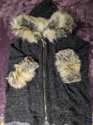 Chaqueta poncho lana con capucha y pelo
