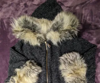 Un abrigo tipo capa, oversize, perfecto para el invierno, original, con mucho diseño y súper calentito. Posee un diseño moderno y elegante con los detalles de pelo en las mangas y en el gorro. Es amplio y cómodo por eso se adapta a cualquier medida. Posee mangas tres cuartos murciélago también rematadas en pelo, bolsillos y cierre de cremallera. - Tejido texturizado con tonos negro y gris. - Made with love and: 70% Lana - 30% Poliéster. - Adornos de pelo sintético en cuello y mangas. - Cierre frontal con cremallera. - Posee un par de bolsillos delanteros. - Talla única, oversize, perfecta para servir desde talla S hasta XL.