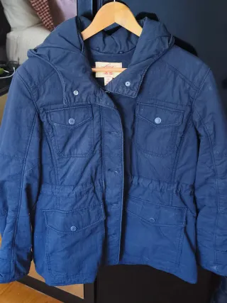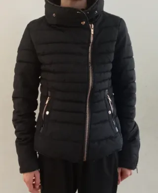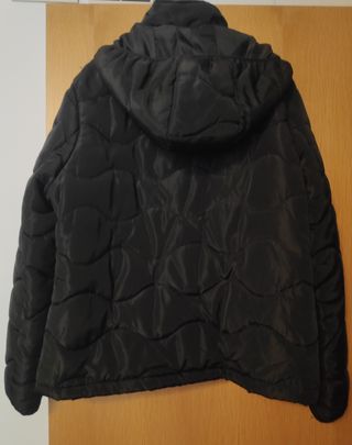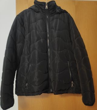 Chaqueta acolchada con un diseño moderno y elegante. - Cierre de cremallera frontal. - Dos bolsillos laterales con cremallera. - Capucha integrada. Prácticamente sin uso