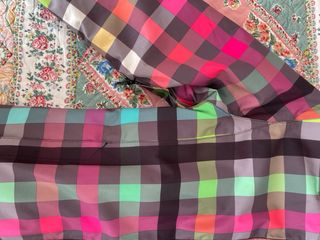 Chaqueta de esquí con un diseño a cuadros llamativo. Muy buen impermeable. - Patrón de cuadros multicolor. - Cremalleras laterales. - Puños ajustables. - Bolsillo para forfait