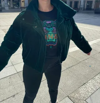 Chaqueta de terciopelo con un llamativo diseño. - Material: Terciopelo. - Color: Verde. - Corte: Acolchado.